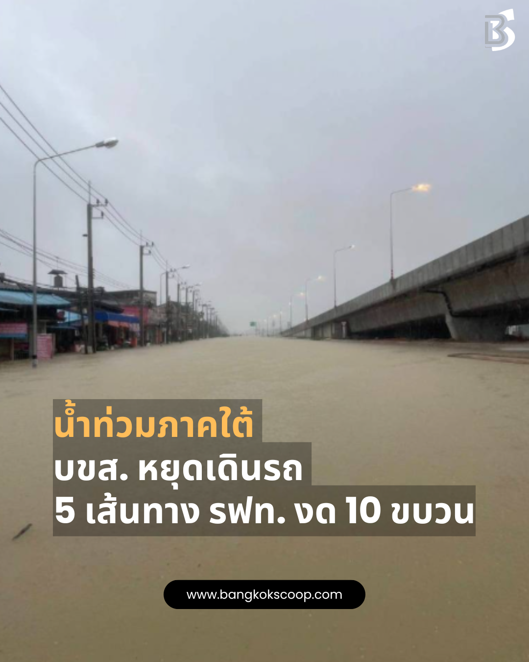 น้ำท่วมภาคใต้ บขส. หยุดเดินรถ 5 เส้นทาง รฟท. งด 10 ขบวน