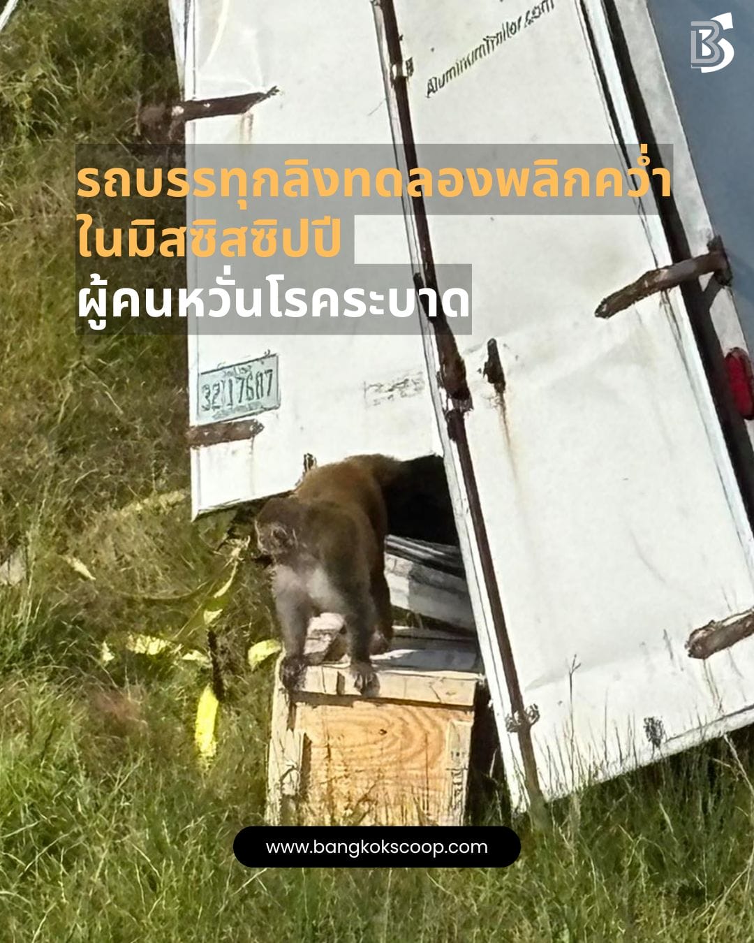 รถบรรทุกลิงทดลองพลิกคว่ำในมิสซิสซิปปี ผู้คนหวั่นโรคระบาด