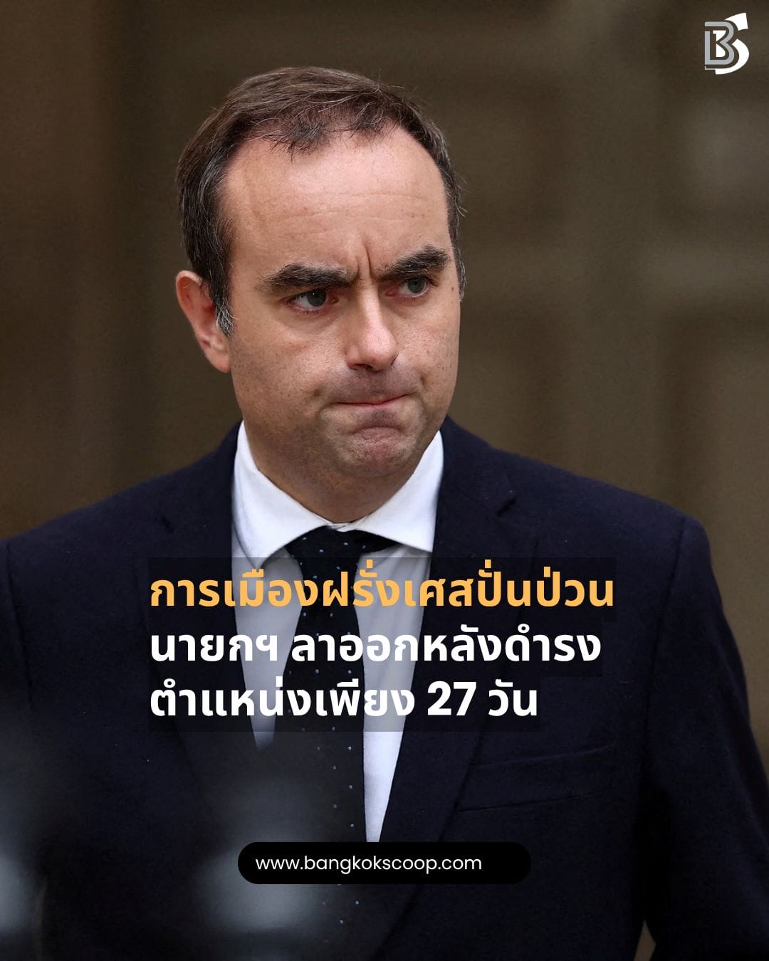 “เซบาสเตียน เลอคอร์นู” ได้ประกาศลาออกจากตำแหน่ง นายกรัฐมนตรีฝรั่งเศส หลังดำรงตำแหน่งเพียง 27 วัน โดยให้เหตุผลว่ามีเงื่อนไขและสถานการณ์ที่ไม่เอื้ออำนวยต่อการปฏิบัติหน้าที่ เขาได้รับการแต่งตั้งเข้ารับตำแหน่งเมื่อวันที่ 9 กันยายนที่ผ่านมา หลังเกิดการลาออกของนายกฯ ก่อนหน้า และในช่วงเวลาที่ดำรงตำแหน่งเขาถูกวิจารณ์อย่างหนักเรื่องโครงสร้างคณะรัฐมนตรีและภาระหนี้สาธารณะของประเทศ
