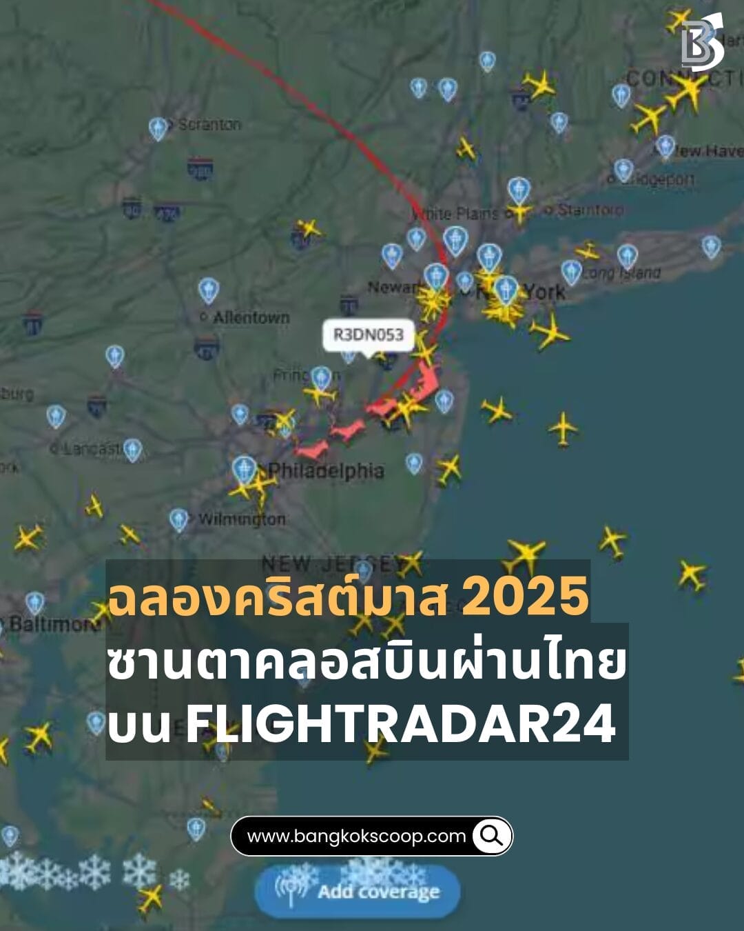 เว็บไซต์ติดตามการบิน Flightradar24 เชิญชวนคนไทยติดตามเส้นทางบินของ “ซานตาคลอส” ในช่วงเทศกาลคริสต์มาส 2025 โดยแสดงเป็นเครื่องบินชื่อ R3DN053 หรือ HOHOHO/SANTA1 ซึ่งบินผ่านหลายจังหวัดของไทยรวมถึงพัทยา ผู้ชมสามารถดูตำแหน่งแบบเรียลไทม์ได้ตลอด 24 ชั่วโมง โดยเที่ยวบินดังกล่าวมีระดับความสูงประมาณ 60,000 ฟุตและความเร็วราว 5,487 กม./ชม. พร้อมการรายงานผลการบินที่ได้รับความสนใจจากผู้รับชมจำนวนมาก