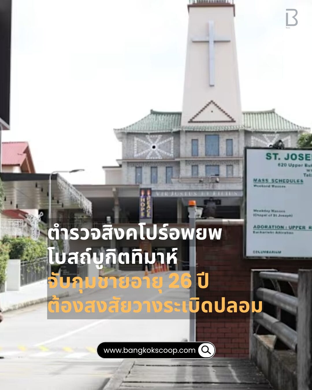 เมื่อเช้าวันอาทิตย์ที่ 21 ธันวาคมนี้ โบสถ์ St Joseph’s Church ย่านบูกิตติมาห์ของสิงคโปร์ต้องอพยพหลังเจ้าหน้าที่ได้รับแจ้งเกี่ยวกับวัตถุต้องสงสัยภายในบริเวณลานโบสถ์ โดยตำรวจและหน่วยเชี่ยวชาญด้านวัตถุระเบิดของกองทัพได้รับคำสั่งให้ตรวจสอบ พบวัตถุดังกล่าวเป็นเพียงกระดาษแข็งและสายไฟไม่มีส่วนประกอบระเบิด ทำให้การปฏิบัติการสิ้นสุดลงในตอนเย็น ไม่มีผู้ได้รับบาดเจ็บ แต่เจ้าหน้าที่ได้จับกุมชายอายุ 26 ปี ซึ่งเป็นอาสาสมัครของโบสถ์ภายใต้กฎหมายต่อต้านการก่อการร้ายและกำลังสอบสวนต่อไป