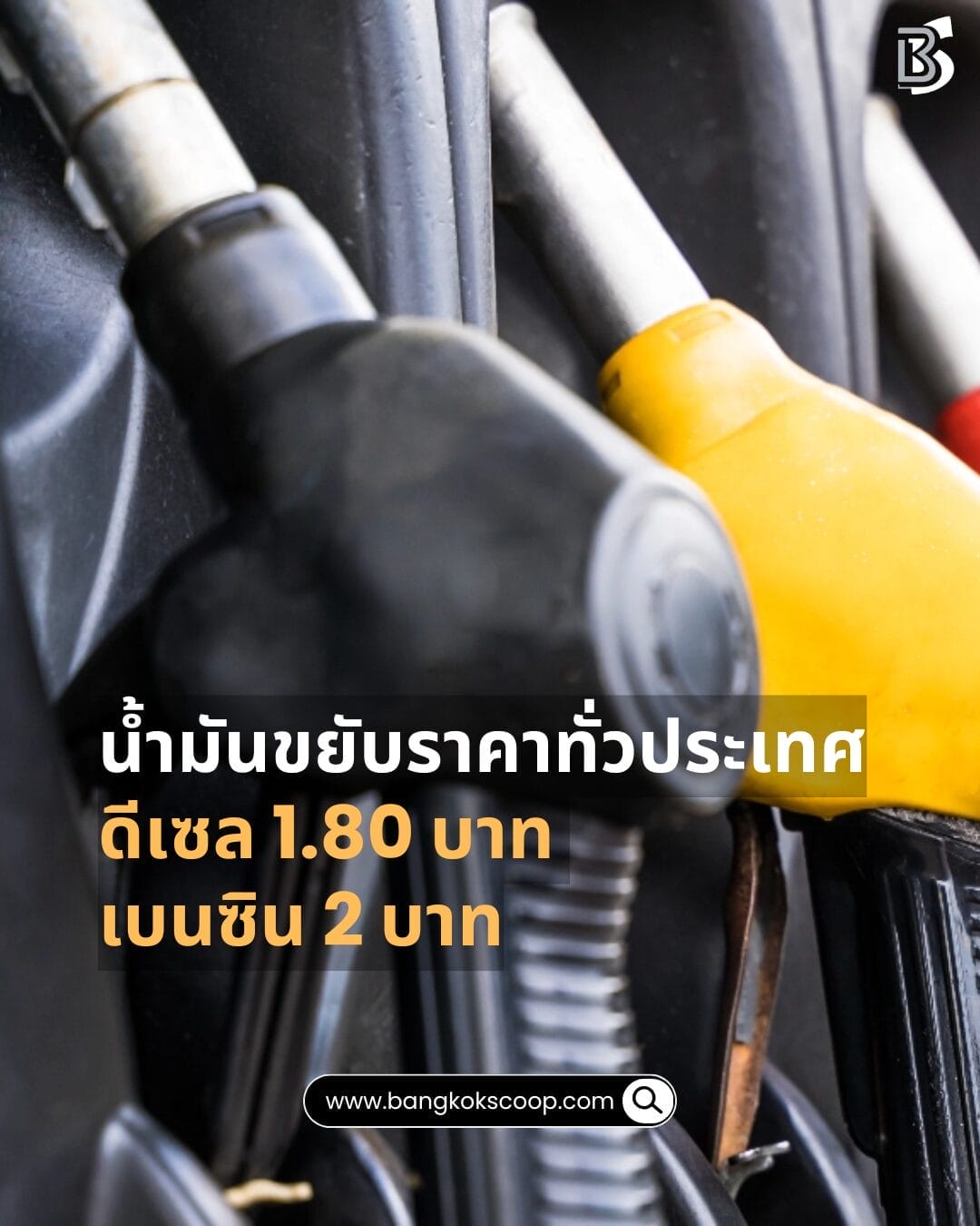 น้ำมันขยับราคาทั่วประเทศ ดีเซล 1.80 บาท เบนซิน 2 บาท