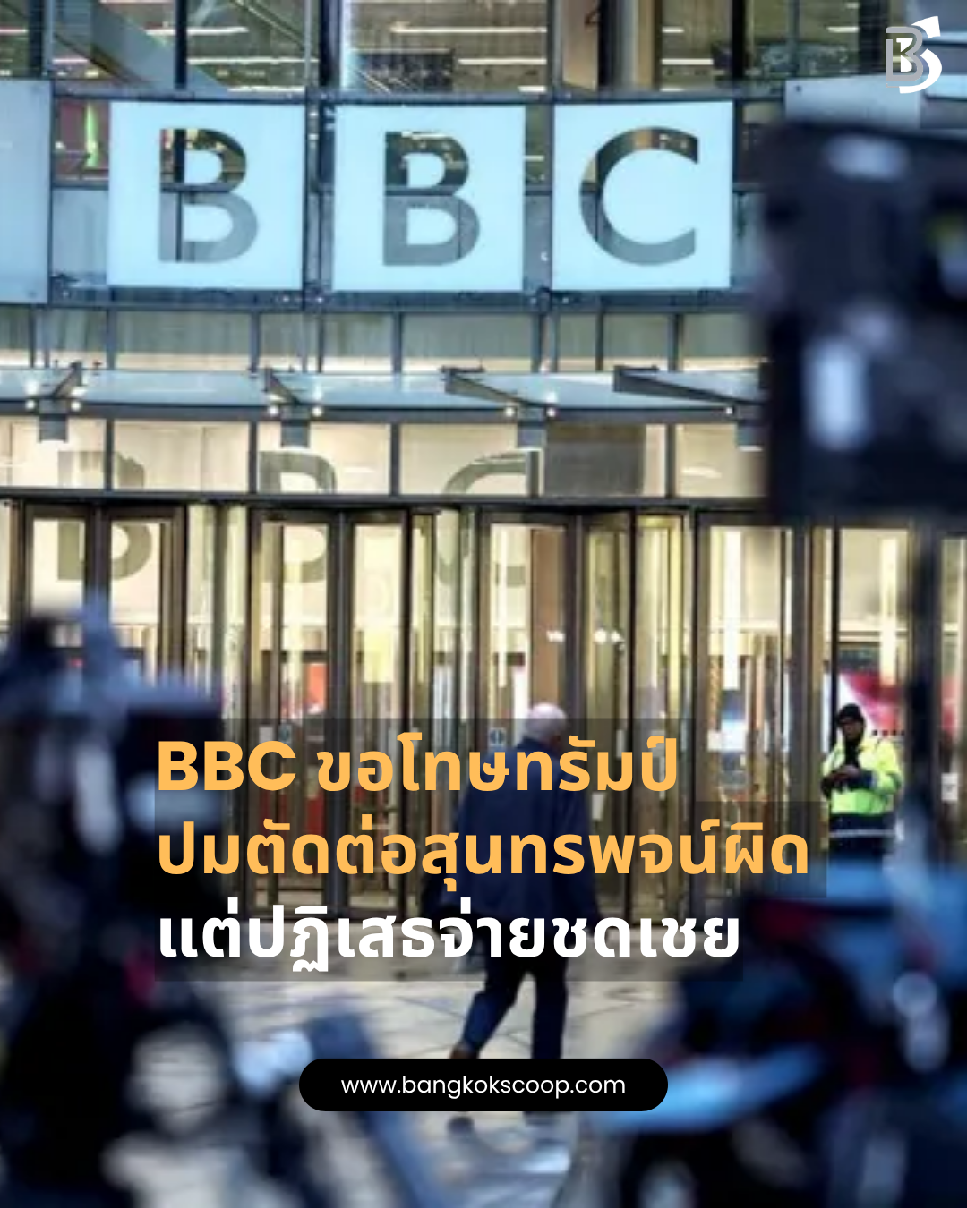 BBC ออกแถลงขอโทษอดีตประธานาธิบดีโดนัลด์ ทรัมป์ หลังรายการ Panorama ตัดต่อสุนทรพจน์วันที่ 6 ม.ค. 2021 แบบสลับช่วงเวลา ทำให้ดูเหมือนทรัมป์เรียกร้องให้เกิดความรุนแรง แต่ปฏิเสธจ่ายค่าชดเชยตามที่ทีมกฎหมายทรัมป์เรียกร้อง 1 พันล้านดอลลาร์ โดยให้เหตุผลว่าไม่ได้เผยแพร่ในสหรัฐ ไม่ได้เกิดความเสียหายต่อทรัมป์ และไม่มีเจตนาหลอกลวง ด้านแรงกระเพื่อมภายในทำให้ผู้อำนวยการใหญ่และหัวหน้าข่าวของ BBC ลาออก ขณะที่การเปิดโปงคลิปตัดต่ออีกชิ้นจาก Newsnight ยิ่งเพิ่มแรงกดดันต่อมาตรฐานบรรณาธิการขององค์กร